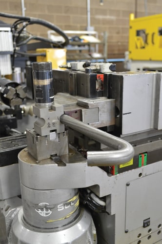 Capital Investments. He coupled these initiatives with new equipment purchases. He invested in three rotary draw all-electric tube benders, SOCO models SB-32, SB-52x10A, and SB-63AUTO. With model names that match the maximum diameters they bend—32, 52, and 63 millimeters, corresponding to 1.25, 2, and 2.5 in., respectively—they have the precise bending control associated with servomotor technology. The SB-32 and SB-52 machines do both right- and left-hand rotary draw bending and push bending. The 2-in. model has 10 axes of control, and the 1.25-in. machine has eight, enabling tight-radius compound bends, with or without mandrel.