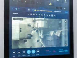 Rapid speed and precision – in this context, this also explains why the robots mentioned are also used for tool changes, whereby EMAG has divided the entire process into two parts, so to speak. On the one hand, there is the operator’s task: he always sees a prediction for the tool change on the central control panel. If he wants to change a tool, he simply presses a button and the tool magazine swivels outwards for the change. It is important to note that the production process is not interrupted during this process. After the exchange, the magazine swivels back to its starting position. The manual process is now complete and an automated process follows in the second step. To do this, the left-hand robot first puts down its workpiece gripper and picks up a tool gripper. It then removes the worn tool from the interior of the machine and replaces it with a new one, which it takes from the magazine. To further increase process capability, each tool is coded with an RFID chip so that the tool data can be transferred accordingly. The entire tool change takes less than 90 seconds.