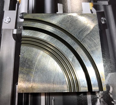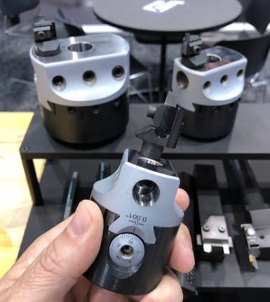 Until recently, shops had two options to machine circular grooves in the face of a part. One is to spin a part in a turning center and feed in a static face-grooving tool. The other is to use a machine tool to circle-interpolate using an end mill. Shops typically go with the latter option when the part cannot be chucked in a turning center, has a geometry that includes bosses or features impeding tool access, or would create an out-of-balance condition when spun. However, tool breakage and long cycle times can be an issue, especially when using small-diameter end mills. Plus, those tools create only symmetrical groove profiles.