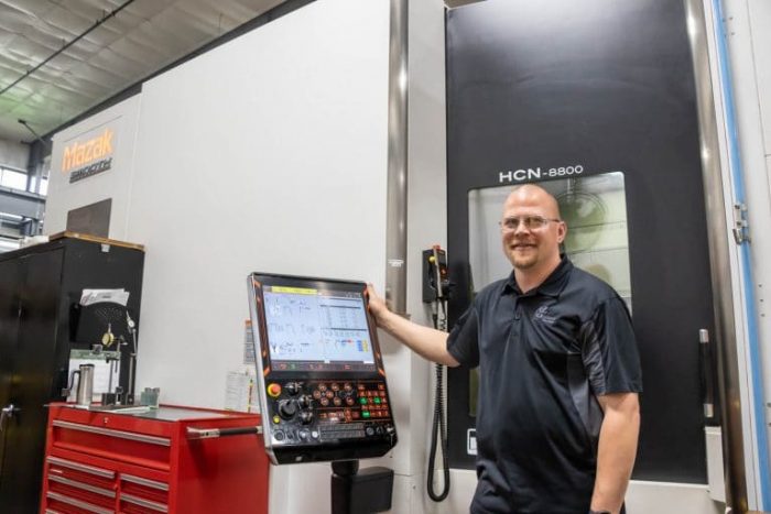 Marc Manteufel, lead manufacturing engineer, said A to Z Machine selects its machining centers like this Mazak HCN 8800 for dependability and speed in rapid traverse and tool change. (All images provided by Mazak)