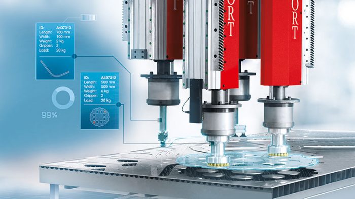 The ASTES4 premium sorting solution has four pick-up arms, so it can remove four parts at once after they are laser cut.