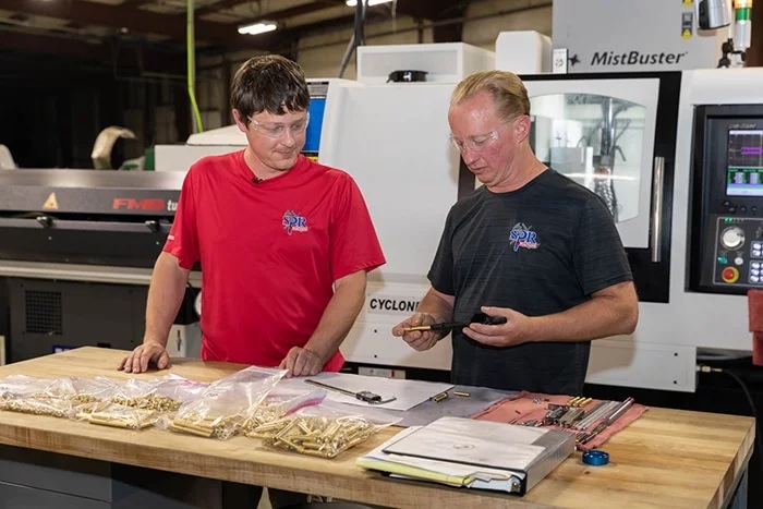 With a new machine in house, SPR needed to find the right employee to dive into its learning curve. Operator David Burton, who previously worked in SPR’s deburring department, took on the challenge. In a few months, he learned block coding and G-code for a two-spindle machine and produced the initial program for the part.