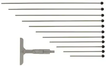 This set includes 12 interchangeable rods capable of measuring depths of up to 12”. Achieve ultimate precision with the smallest graduation interval of 0.001″; with + or – 0.0001″.