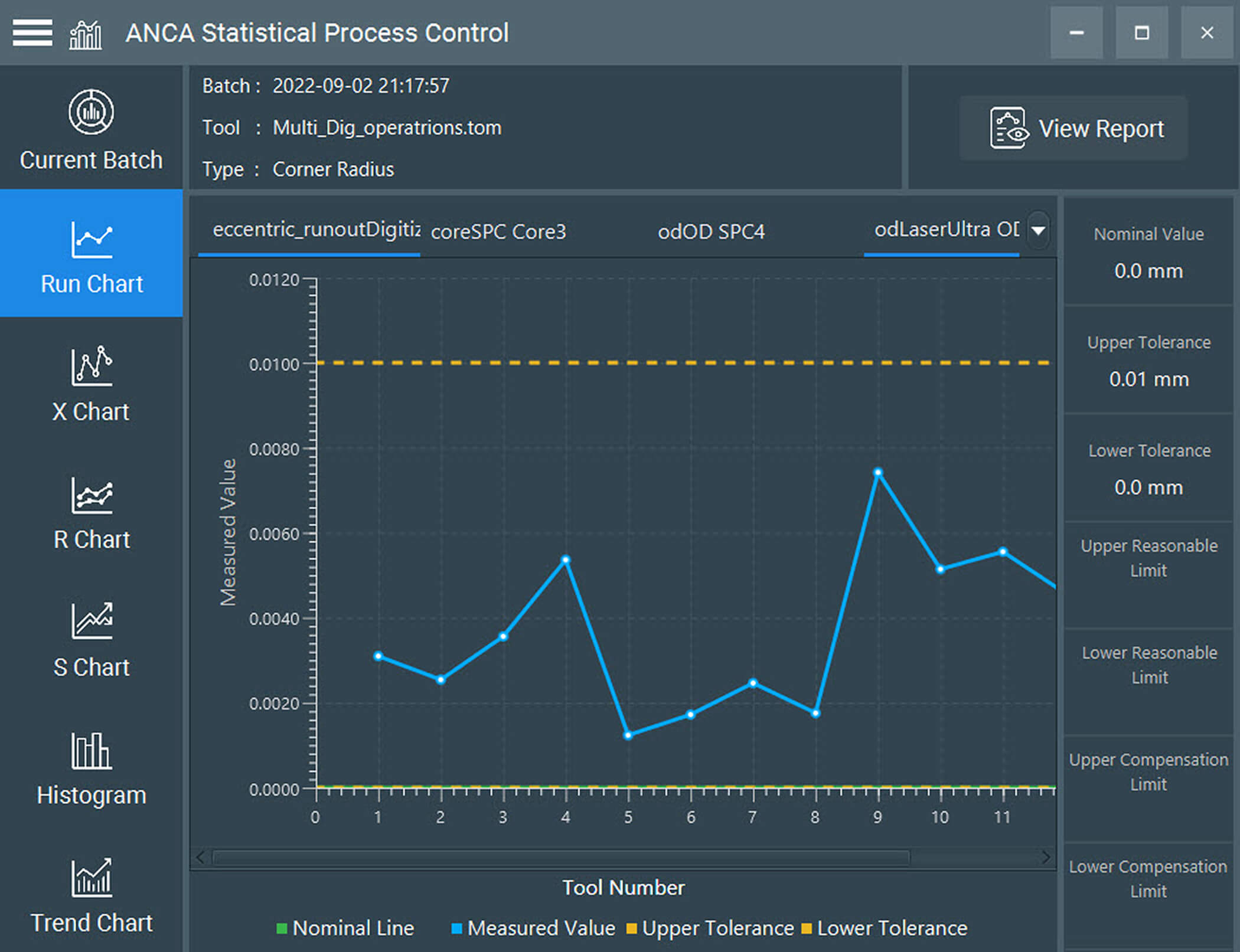SPC (Statistical Process Control): ANCA’s revamped SPC software empowers users with comprehensive control of the production process during high-volume manufacturing. Key features include: