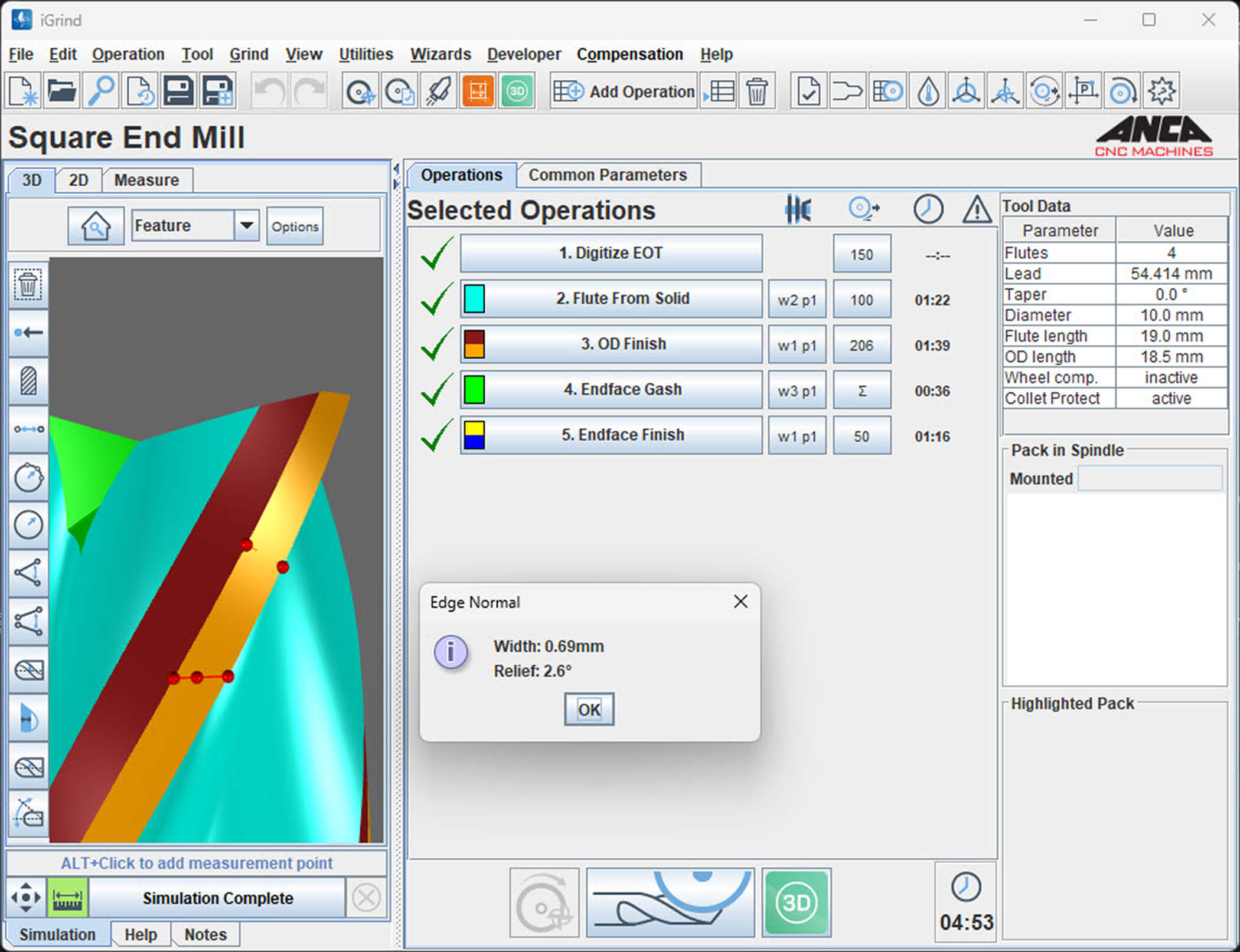 I3dg improvements: ANCA has enhanced i3dg features, allowing for faster comparison of tools on the machine during small changes. The software also enables the measurement of features after changes, providing a seamless validation process.