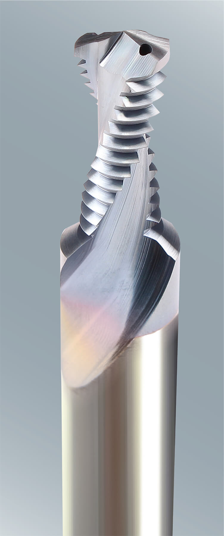 A: It really comes down to economy and versatility. Because you can cut any pitch thread with a single-flute thread mill, shops don’t have to stock as many tools. They can also just leave that tool set up in the magazine and call it up whenever they need to make some threads. That said, a multi-flute tool is much faster. Instead of making a couple of dozen passes with a single flute tool, one with the complete thread profile can produce any thread in two passes or less, geometry and material permitting.