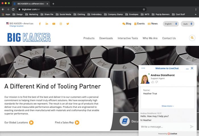 Hoffman Estates, IL – In order to help current and future customers with their inquiries, BIG KAISER Precision Tooling has introduced an easy and convenient way to directly access the company’s experts. LiveChat is available now on BIGKAISER.com.