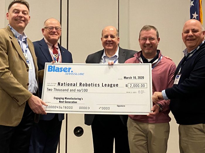 Goshen, NY – A recent promotion from Blaser Swisslube challenged U.S. manufacturers to test a Blaser metalworking fluid or to share a user experience to raise funds for the National Robotics League (NRL). The 2019 year-end offer raised $2,000 for the workforce development program.