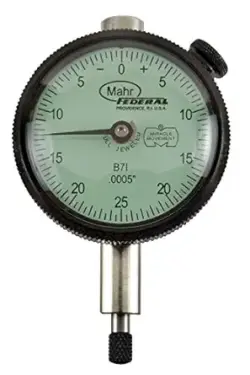The Mahr Federal dial indicator is used to measure dimensional deviations. It has a measurement range of 0 to .75″, graduations of 0.0005″, an accuracy of ±0.0005″, and a range per revolution of 0.050″. The dial is light green for easy reading and includes inch recognition with a contrasting hand, for readability. he dial is balanced with a reading of 0-25-0, for comparative readings.