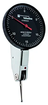 The Mitutoyo dial test indicator features a .079″ carbide contact point. Uusers have expressed high praise about this tool for its smooth use and accurate readings. This test indicator has graduations of .0005″/0.01mm, a range of .030″/0.7mm, and a dial face of 0-15-0/0-35-0.