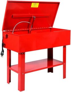 The most common way to do this is by submerging the part in a parts washer like the one below that is filled with a mix of heated water and solvent (this is what we recommend).