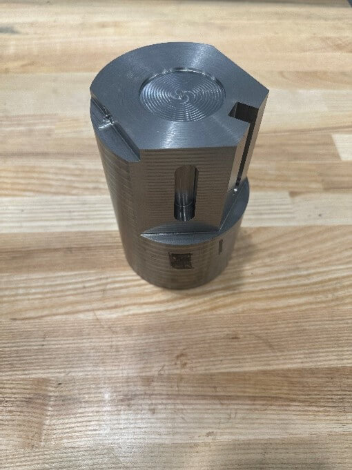 With design approval from HAIMER, OMIC R&D created a facsimile part to put both collet systems to the test. We wanted to make sure this test would incorporate as many different surfaces as we could to get a full picture of how these collets would compare. This part included various features such as Flats, Open and Closed Side Pockets, and Face Pockets, each requiring those different endmill diameters (1/2″, 3/8”, and 1/4”, respectively). We created four identical parts that were going to be used with each of the endmills. For the material, we used four-inch diameter 4140 steel workpieces, prepped and provided by OMIC R&D. This choice of material ensured consistency and reliability in our testing conditions.