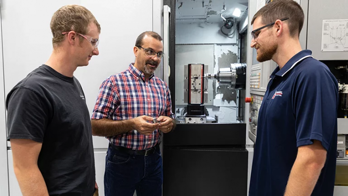 Arundel Machine changed its CAM software to ESPRIT from DP Technology. (From left) Matt Dunham, machinist, John Hebert, engineering manager, and Tyler O’Donovan, manufacturing engineer for Arundel Machine.