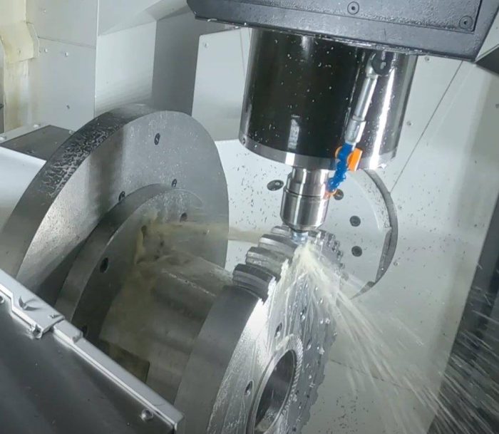 EMUGE-FRANKEN “Pagode” form end mill cutter performing contour finishing on a 5-axis Okuma machining center.
