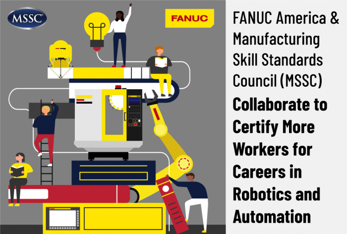 ROCHESTER HILLS, MI – FANUC America, the leading supplier of CNCs, robotics, and ROBOMACHINEs, and MSSC, the long-established U.S. leader in certifying front-line production technicians with foundational skills in advanced manufacturing and logistics, have aligned to co-market the stackability of their respective industry-recognized certifications. This alliance represents a major step to address the acute shortage of skilled industrial robotics and automation operators.