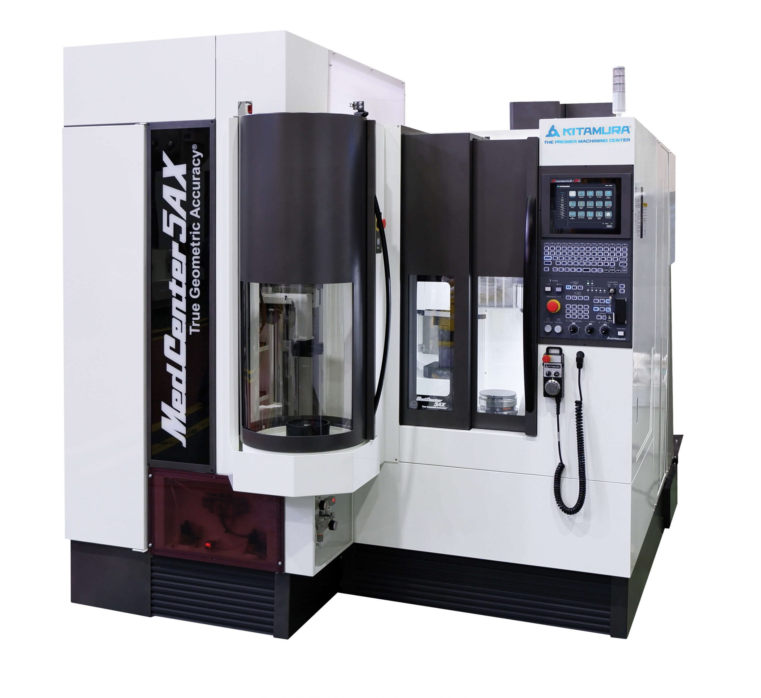 Kitamura’s versatile MedCenter5AX is an ultra-high precision, 5-axis machining center that offers unparalleled accuracy and speed for expanded machining capability in the machining of highly complex small to medium, multi-sided parts in one set-up. The machine’s maximum stiffness, flexibility, and cutting capability make it an optimal choice for manufacturing precision parts for the medical, aerospace and telecommunications industries.