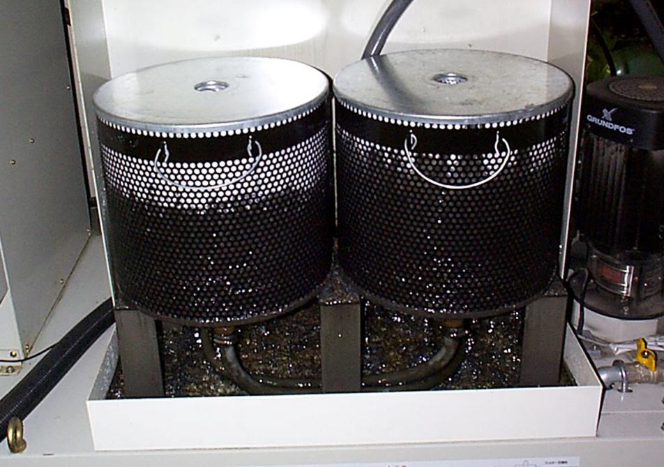 A filter pump’s intake screen can be very problematic. It can get plugged with paper towels, shop rags or large flakes of dry sludge. Screen blockage will affect circulation and machine performance. This should be checked by hand regularly or on a weekly basis.