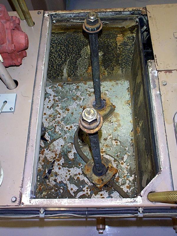 The lower arm and head can accumulate excessive dirt from being submerged. Build up on the arm will cause O-ring wear, leaking and accuracy problems. Build up on the head and ceramic plate will cause current loss and reduce machine speed. It takes about 15 minutes to clean these areas and should be performed every 500 hours.
