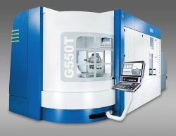 The GROB G550T 5-Axis Mill/ Turn Universal Machining Center is capable of machining a part by milling and turning in a single setup, saving time, costs and floor space.