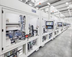 GROB Systems’ battery line solution includes stacking prismatic and pouch cells according to different size battery modules, geometrically adjusting the cells and linking them with one another via cell contacting systems. To ensure the highest product quality, testing occurs throughout the line, from start to finish.