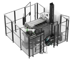The new HAIMER Automation Cube One with Siemens Sinumerik One control is a massive robot cell for 24/7 operation. It is capable of shrinking and unshrinking a tool in just 120 seconds, measuring it and transferring the data to the machine and databases.