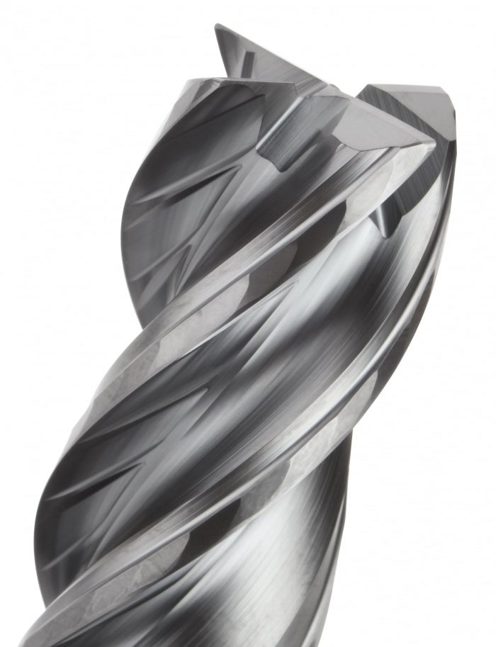 Four-flute, solid carbide end mill delivers superior performance for steel, stainless steel, high-temperature alloys, and cast iron