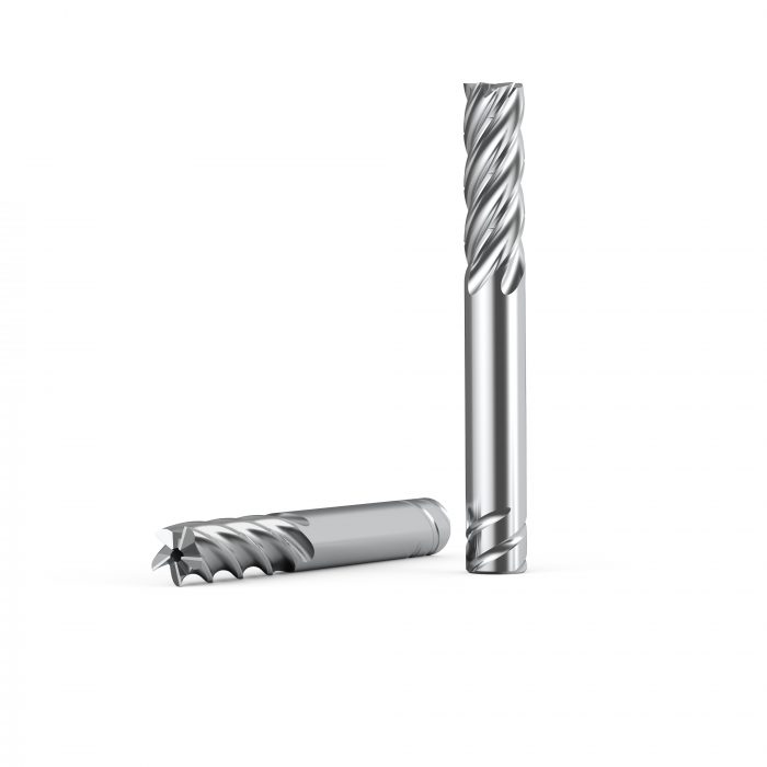Chatter can also be a problem at these velocities. The solution is two-fold. For starters, a variable-pitch flute design should be used to break up harmonics. Next, the cutter should engage with as much of the workpiece as possible, in order to stabilize it. This is achieved by increasing the number of flutes (thus increasing the number of contact points) and thickening the core—instead of two or three flutes, five provides the optimum balance of stability and metal removal.