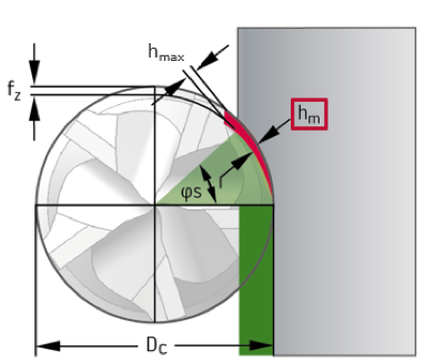 This is the phenomenon of creating a smaller chip by engaging a small percentage of the tool diameter (less than half). When less than half the tool diameter is engaged in the cut, the average chip thickness is less than the advance per tooth. 10-20% radial engagement of the tool diameter results in a significant reduction in average chip thickness, and we need to be aware of this. The average chip thickness should still meet the tool manufacturer’s recommendation for chip load. If it doesn’t, then we are not maximizing the tool’s capability. It also can result in the chip not being physically large enough to hold the heat produced by the cutting operation. A small chip has less capability to hold heat which results in either the tool or the workpiece absorbing this latent heat, which is undesirable. Feeding the tool faster is the solution to preventing excessive radial chip thinning, which is a nice “solution” to incorporate.