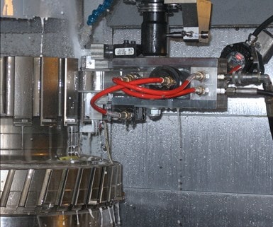 While Lambda sells and leases its LPB tools, it usually performs the burnishing operations for customers itself on its modified VMCs. It uses presetters and touch probes during setup to maintain accuracy and reliability, and it had to develop its own custom toolchangers to meet customer needs for certain complex parts, designed around the need to connect the tool to the hydraulic system. As the LPB process requires only positioning and pressure, the company is not limited to simple geometries, and it can perform both wet and dry applications depending on the application.
