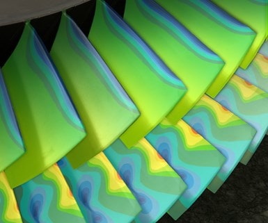 Every job Lambda takes on involves a complete analysis of the material and stresses. Pictured here is an FEA of a turbine, which enables the company to identify points of high stress.