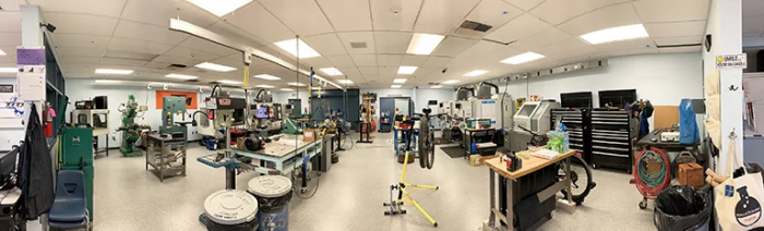 Another project is also tied into mountain biking. There’s an A-frame that the bikes are hung on by the seat—sort of glorified sawhorses—that includes a joint where everything comes together at the top of the “A.” Our students designed and machined a cool-looking connector for that joint out of a solid block of aluminum.