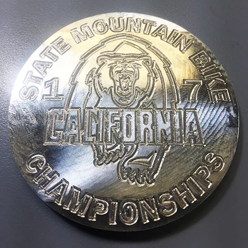 One of the medals programmed in Mastercam for the school’s mountain bike race team.