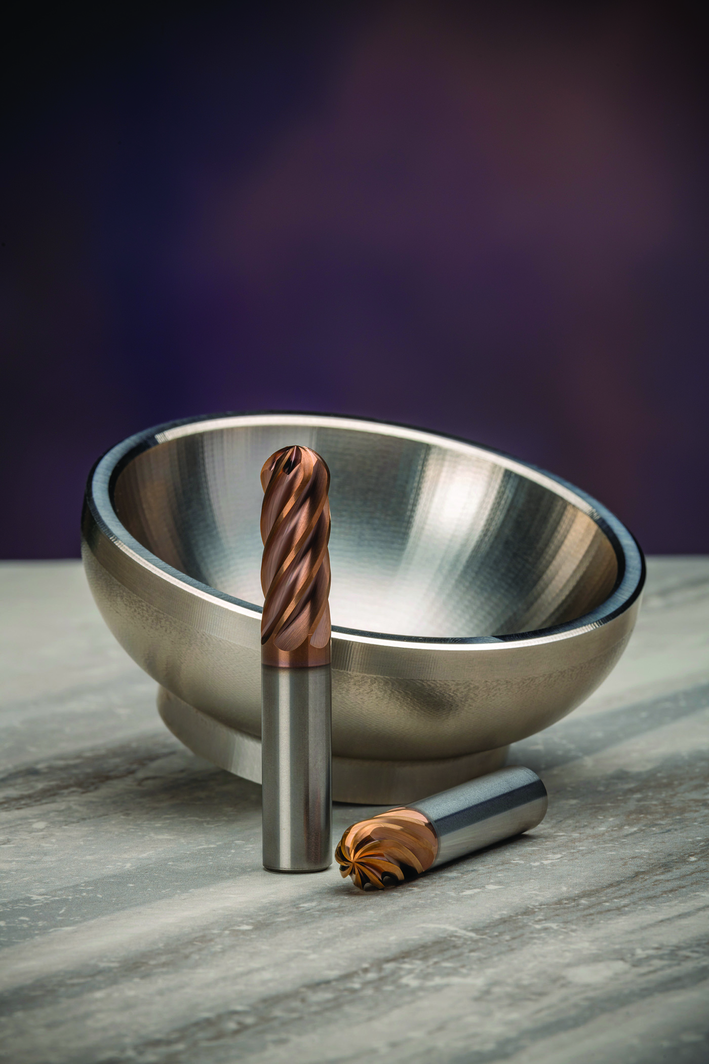 Designed for 3D contouring and chamfering at the fastest possible speed and feed rates, POW-R-ARC cuts and finishes in hardened metals up to 62 HRc, aluminum, stainless steel, low carbon steel, and super alloys such as high nickel alloys, cobalt chrome and titanium, said Matt Osburn, vice president and technical director. “We focused on speed and high feed rates, and POW-R-ARC exceeded all expectations,” Osburn said. Available with 6 or 8 flutes, POW-R-ARC cutters feature advanced geometries, free-cutting design and a next-generation coating for faster feed rates, greater lubricity and reliable chip clearance in most materials.