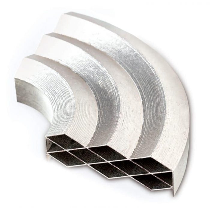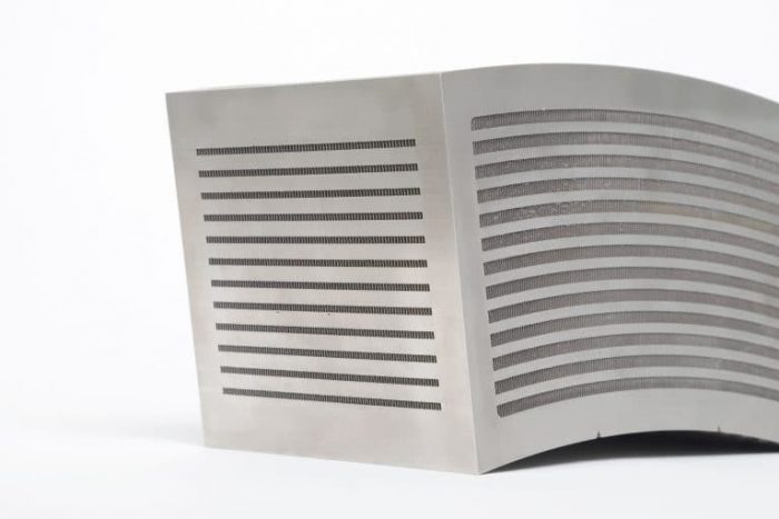 Heat exchanger section printed in metal with no internal support material. (Provided by Velo3D)