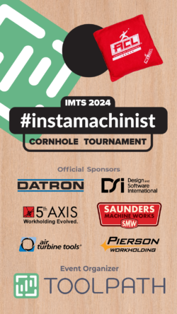 You can find the #instamachinist Cornhole Tournament and the #instamachinist Lounge in the Toolpath Booth (South Hall, Booth 338248).