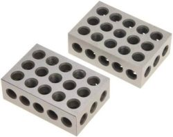 The Shars 1-2-3 blocks are ideal for precision, grinding and layout jobs. The blocks are precision ground and hardened on all sides. The hardness is 56 to 60 RC. If this exact set isn’t right for your needs, there are other models with different amounts of holes.
