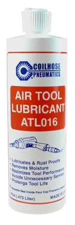This heavy-duty air tool lubricant is a long lasting, super slick lubricant that allows air tools to run better and last longer. The solution is a complex blend of pure petroleum oils and additives specifically formulated to combat rust and varnish. It coats the working parts with a cushion of waterproof lubricants that resist corrosion and rust.