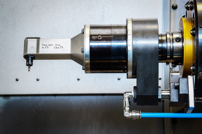 The system is operated by 6- bar compressed air through the stop pin or by a closed hydraulic circuit controlled by a piston. The entire system can be automatically exchanged by the tool changer and can mount heads with collet capacity up to a diameter of 10 mm. Now it’s possible to use a single head for multiple operations, to avoid additional workpiece setups or tool changes and to carry out various machining processes with a single solution. One head, 360 ways of using it. Alberti believes in continuous improvement and has been reinvesting a significant portion of their total turnover in research and development.