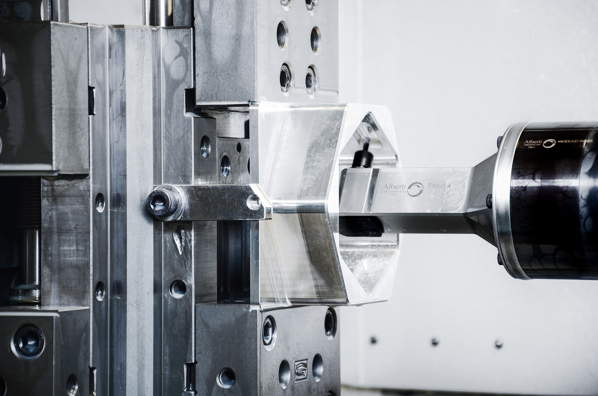 The system is operated by 6- bar compressed air through the stop pin or by a closed hydraulic circuit controlled by a piston. The entire system can be automatically exchanged by the tool changer and can mount heads with collet capacity up to a diameter of 10 mm. Now it’s possible to use a single head for multiple operations, to avoid additional workpiece setups or tool changes and to carry out various machining processes with a single solution. One head, 360 ways of using it. Alberti believes in continuous improvement and has been reinvesting a significant portion of their total turnover in research and development.