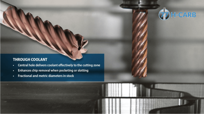 – Coolant-through options are available for better wear, surface finish, and chip evacuation when pocketing or slotting