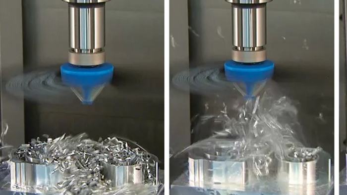 The ATC-capable Chip Blower from BIG Kaiser uses high-volume airflow to remove coolant and chips from the machining area.