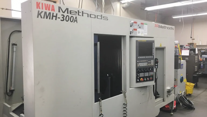Harrod knew that floor space in Alicat’s shop was limited, which is one of the reasons it hadn’t explored an HMC before. He brought up the Kiwa KMH-300A from Methods, as it was a 300-mm machine that fit the shop’s spacing needs and was perfect for the part it was cutting.