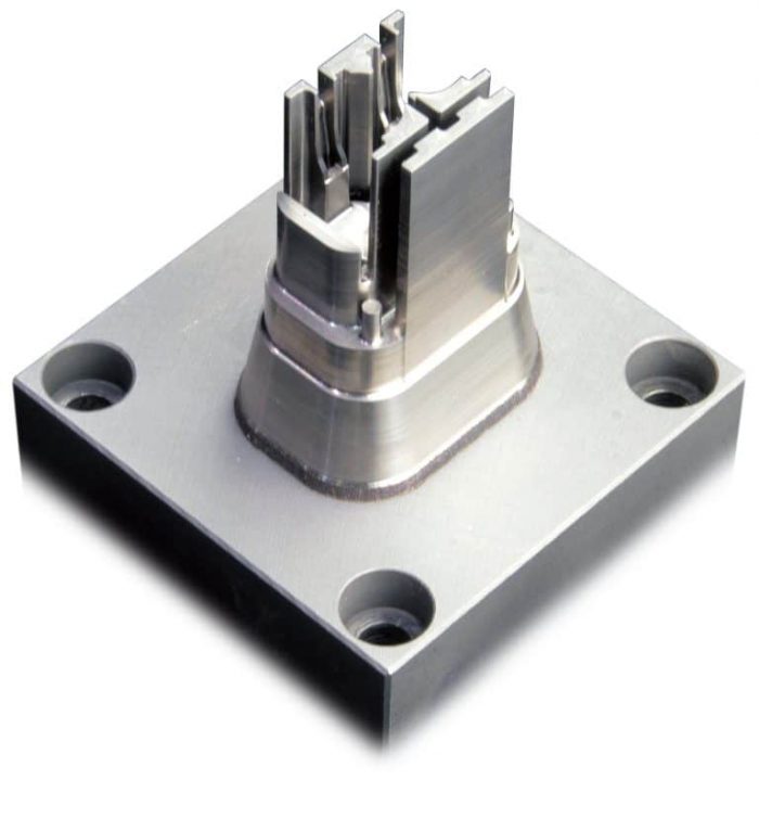 This insert came off a LUMEX hybrid machine basically ready for assembly into a production mold. (Provided by Matsuura)