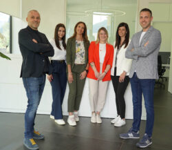 Proud of what has been achieved: Alessandro Reguzzo (left) with components of his team. The company is growing continuously and offers its employees a modern and future-oriented working environment.