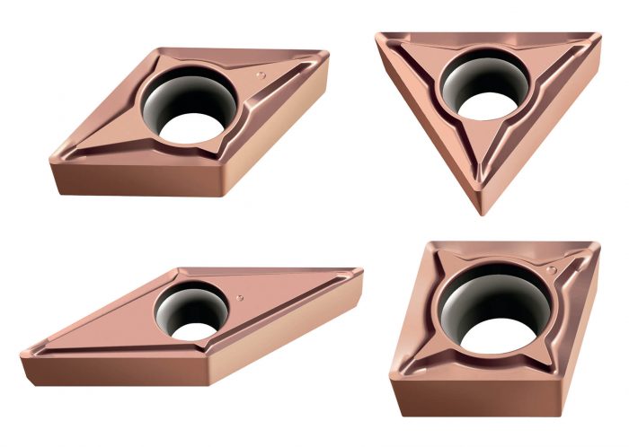 Waukesha, WI—The new indexable turning inserts from Walter are designed for applications where a soft cut and high precision is required. This is achieved through the FP2 geometry, which is a high positive (18°) rake angle geometry with soft hone that insures reduced cutting forces and vibration tendency. High tool life is achieved through WEP10C coated cermet grade with multilayer TiCN TiAlN PVD coating and fine cermet micro grain. The combination of edge preparation and grade also ensures dimensional stability over long periods of time, which boosts productivity in mass production.