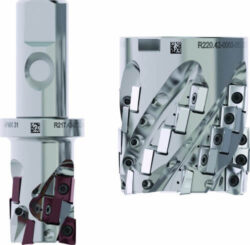 The milling cutter has two different inserts. There are two cutting edges on the front inserts and four edges on the helix inserts. The design allows robust machining operations and aggressive material removal rates. Cost performance is enhanced, and tool life is improved. Inserts are available in a broad range of grades and geometries for a variety of operations and materials. The LN4-11 meets the demands of general engineering and automotive applications as well as those in the aerospace sector.