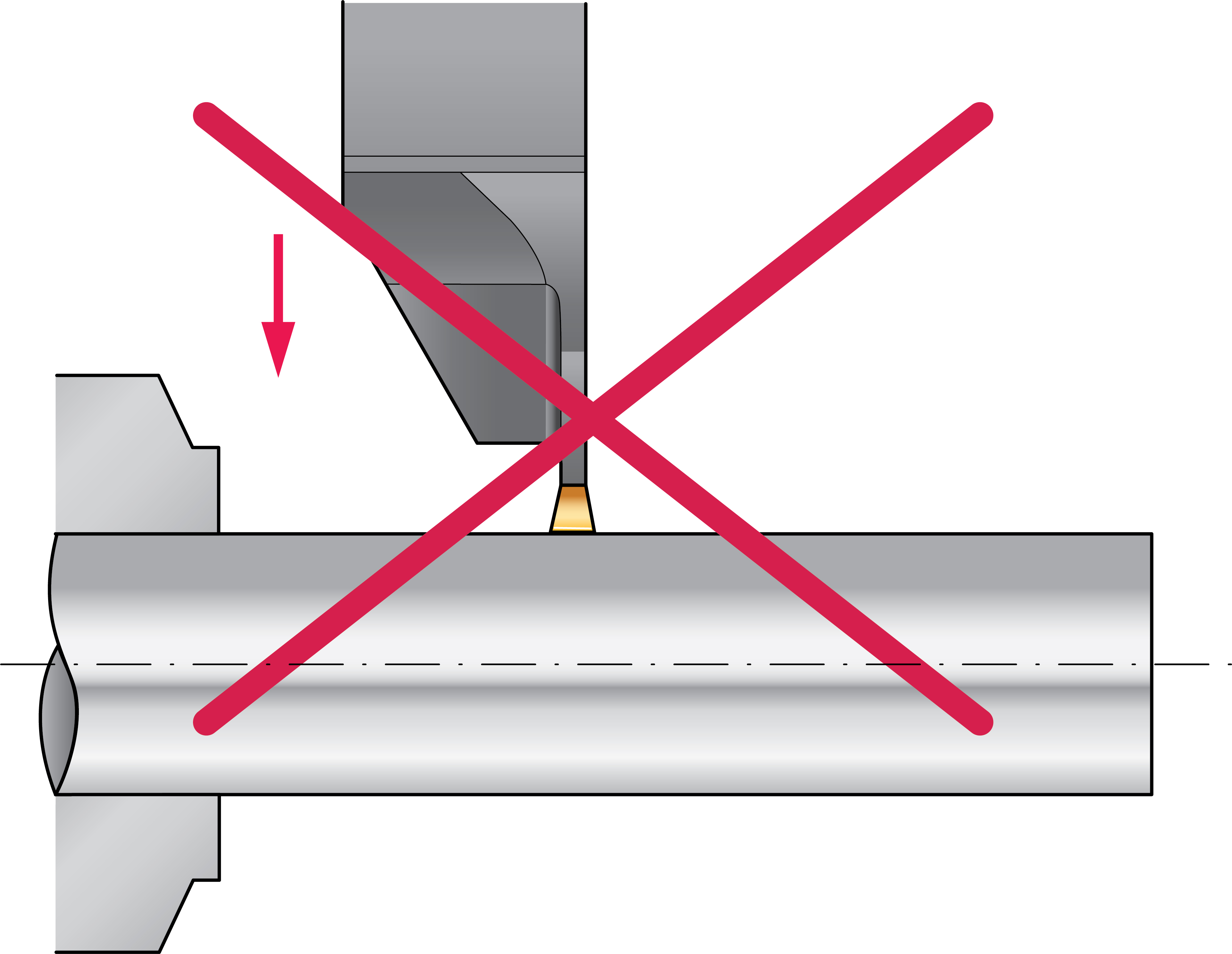 If the tool is positioned over or under the center, the effective cutting angles change during machining. Below is the recommended range for center height variation for consistent tool life and lower pip/burr formation.