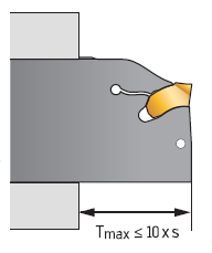 As a rule of thumb, for single sided inserts, the maximum cutting depth [Tmax] of the tool or the maximum clamping length of the insert holder should not exceed 10 × cutting edge width[s].