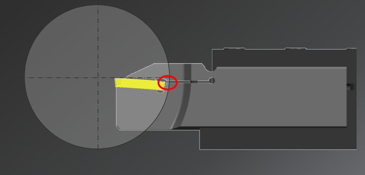 As seen in the images below, if the cutting edge is above center, the edge will leave a pip on the last step near center. As the cutting edge is above center, the pip tends to hit the insert-clearance in an adverse manner, leading to insert chipping and catastrophic failure. Hence keeping the center height variation low allows a longer and more predictable tool life.