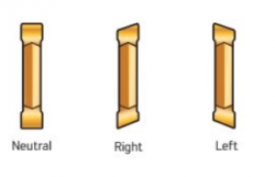First advantage is in reduced exit pip/burr formation. A properly applied handed insert always leaves smaller pip than a neutral insert. However, the hand needs to be selected carefully. If the wrong handed insert is used, then the pip gets left on the parted off component; which is usually the finished workpiece. A simple rule of thumb when selecting the hand of the insert is as follows: